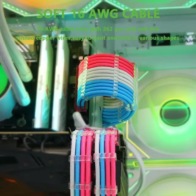 Upgrade your PC's aesthetics and functionality with the Sirlyr PSU Cable Extension Kit. With a unique pre-bent design and pre-installed cable combs, we make cable management easy and visually appealing. Our 8-pin PCIE cables come gold-plated, offering stable power supply and protecting your hardware. The unique colorful design fits well with various build, giving it a cleaner, more professional look. Trust Sirlyr for your PC cable extensions and enjoy quality assurance with our free one-year replacement service for any quality issues. Give your PC a visual and functional boost with the Sirlyr PSU Cable Extension Kit today!