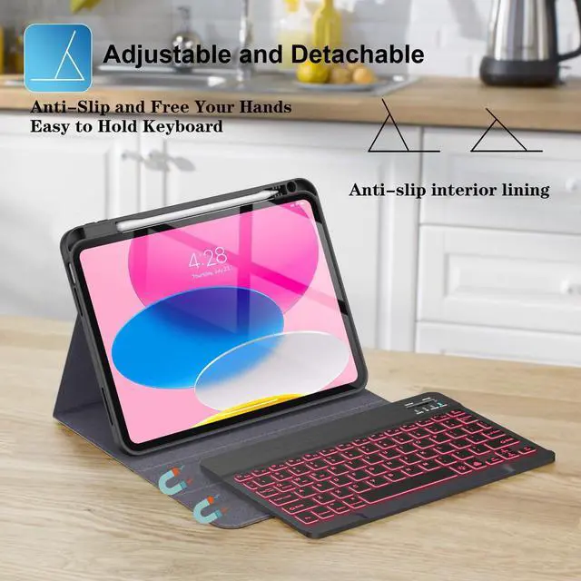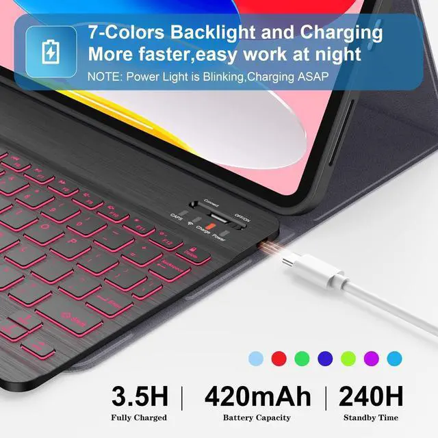 Backlit Keys: This iPad 11th/10th Gen 10.9 inch keyboard case is designed with 7 colors backlit keys that allow typing is more easy in dark, bringing you different visual enjoyment. Rechargeable and
