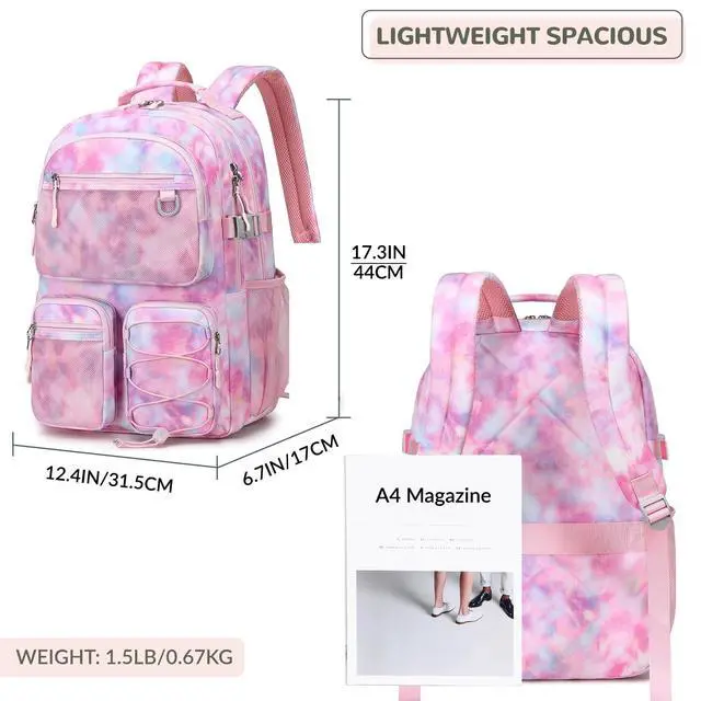 Mesh side pocketDescription: The multi front pocket fits for your keys, ID cards, wallet, power bank, etc. The side mesh pockets is perfect for folding umbrella and water bottle. The large sub zippered pocketcan hold magazines, A4 documents, pen, power bank etc. The Large main room can hold cloths, books, laptop, textbook and so on. The stylish backpack is great for everyone, it is suitable for travel, outdoor, sports, work, shopping and so on.