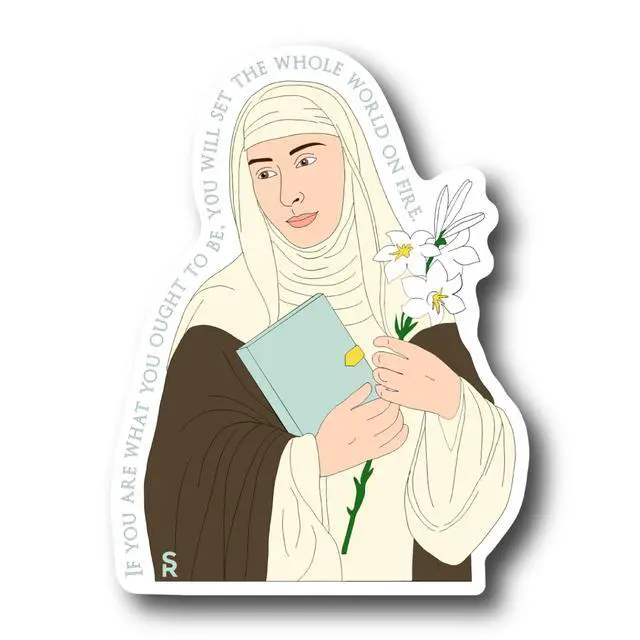 Catholic Concepts ^^ St. Catherine of Siena 4 x 2.25 Vinyl Sticker Label Decal Waterproof Cool Accessory for Laptop, Hard Hats, Water Bottles, Scrapbooks, Folders, Cell Phone ^^ 10-Pack