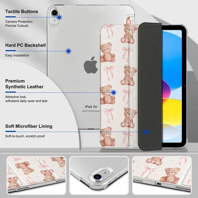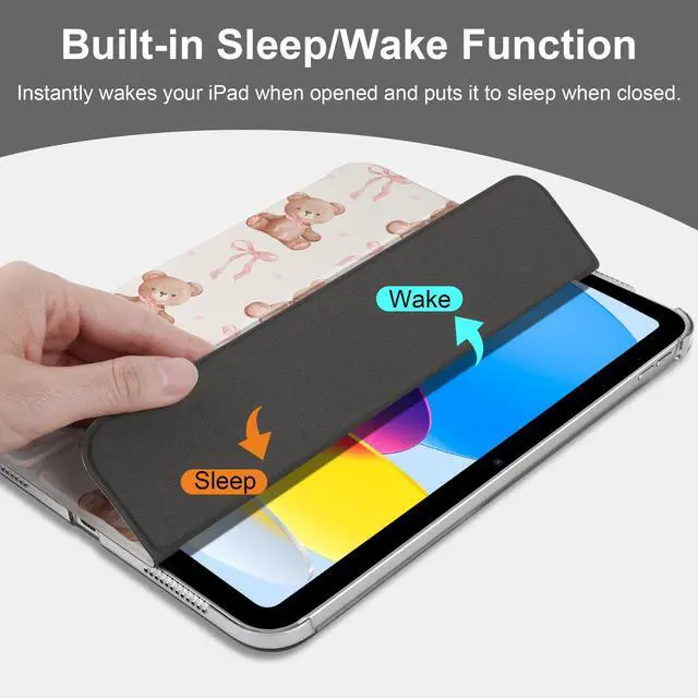 Models: A2591, A2588, A2589, A2316, A2324, A2325, A2072. Not compatible with other iPad models. ^^ Auto Sleep/Wake Function -- Automatically puts your iPad to sleep when closed and wakes it up when opened, saving battery life. ^^ Trifold Stand -- Adjustable 3-fold design offers two viewing modes: one for media viewing and another for comfortable typing. ^^ Durable & Scratch-Resistant -- The case is made from high-quality PU leather and features a hard PC back, offering excellent protection against scratches and fingerprints. ^^ Transparent Hard PC Back & Soft Microfiber Interior -- The transparent, hard PC back allows you to display your logo while providing strong protection. The soft microfiber interior prevents scratches on your iPad screen and ensures safe handling.