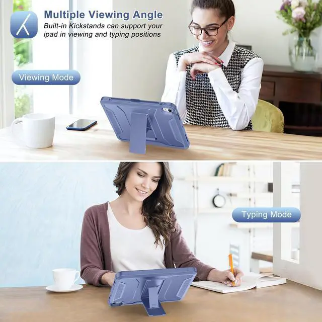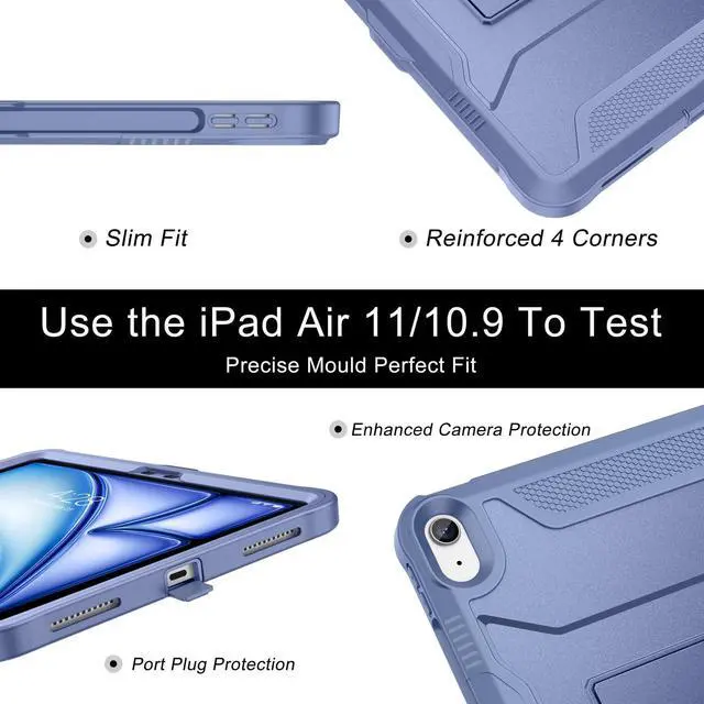Generation 2020 (Model number: A2316, A2324, A2325, A2072). Please kindly check the model number A*** at the back of the tablet or Setting before purchase ^^ Rugged Armor Shockproof ProtectionMulti-layered hard PC back and flexible TPU bumper provide your iPad Air 11 and iPad Air 5/4 strong protection against drops, bumps, and impacts, also easy to install ^^ Built-in Screen ProtectorPrevents your New Apple iPad Air 11 Inch 7th/6th Gen & iPad Air 10.9 Inch 5th/4th generation screen from scratches without compromising sensitivity and provides full protection ^^ Precise cutoutsPrecise cutouts and design allow easy access to all ports, sensors, speakers, cameras without removing the case. Fully supports Pencil Pro/2nd Gen Pencil magnetic charging and Pencil (USB-C) wireless attach to keep your Pencil securely ^^ Built-in KickStandThis case for iPad Air 11 Inch & iPad Air 5th/4th Generation 10.9 Inch functional pop-out kickstand with dual stand angles for easily enjoying movies and better working. FREE YOUR HANDS