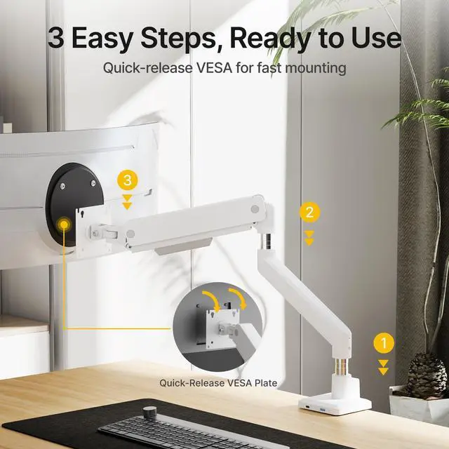 ^^ Constructed to Endure: Crafted with high-grade aluminum, these monitor arms blends robust build with reliable precision mechanicsengineered for consistent performance and lasting strength. It delivers stable, controlled adjustments without wear or tension loss, while the single monitor mount's precision system ensures smooth movement with every adjustment, keeping your screen secure through years of use. ^^ Simple Setup, Stellar
