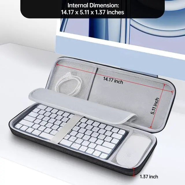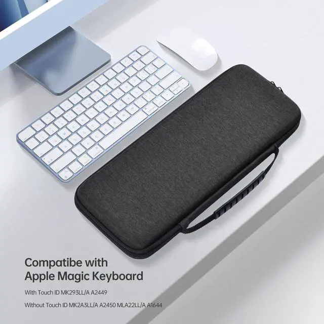COMPATIBILITYThe hard carrying traveling case is designed forApple Magic Keyboard Model A2449 A2450 MK2A3LL/A with or without Touch ID / 2024 2023 2021 Apple iMac 24 inch Magic Keyboard M4 M3 Chip/2015-2020 Apple Wireless Magic Keyboard (2nd Generation) MLA22LL/A A1644 etc Mac keyboard and Apple magic mouse combo. ^^ SUPER HIGH-QUALITY MATERIALSThe hard wireless keyboard Apple mac mini keyboard protective case is made of Nylon and sturdy hard EVA, super quality lining to protect your Apple magic keyboard and mouse mac keyboard wireless Apple keyboard from shock, scratches, drops, bumps, splash, and dust etc outside harm.