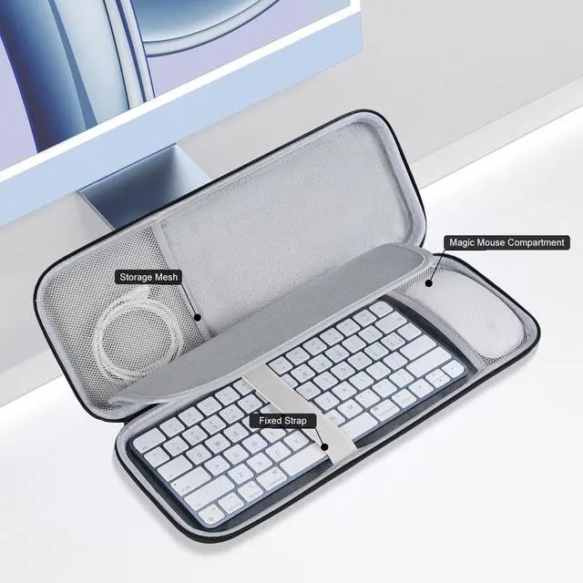 ^^ TSA FRIENDLY DESIGNThe Apple Magic compact keyboard and Apple Magic mouse Carrying Case play as the storage role when traveling or go out, ensure a secure & long-lasting usage everyday. Design with handle, easy and convenient to carry Apple magic keyboard wireless mac keyboard and Apple magic mouse wireless mice to anywhere. ^^ ADEQUATE STORAGE SPACEThe carrying case is customized case for Apple Magic Keyboard, equipped with specially mesh pocket for other accessories storage, such as cables, cords etc; while an expanded side area can store a Magic Mouse.
