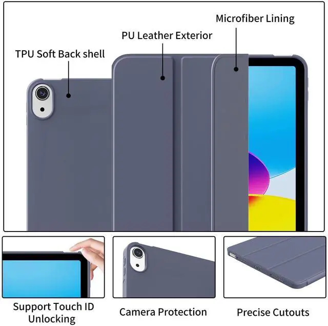 • Precise cutouts : For iPad 10th generation case has precise cutouts, allowing you to easily use all buttons and features (camera, speaker, touch ID ports) of the tablet