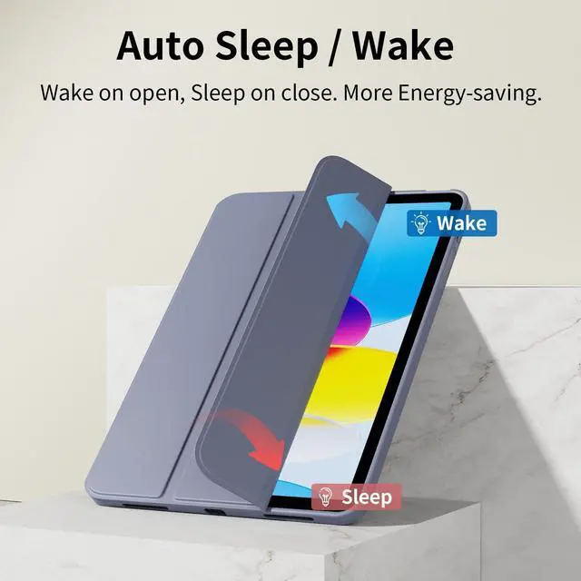 Auto Sleep & Wake: Built-in magnetic strip, our iPad case 10th generation automatically wakes or puts your tablet to sleep when the lid is opened and closed, which can protect and extend the battery life ^^ Ultra slim