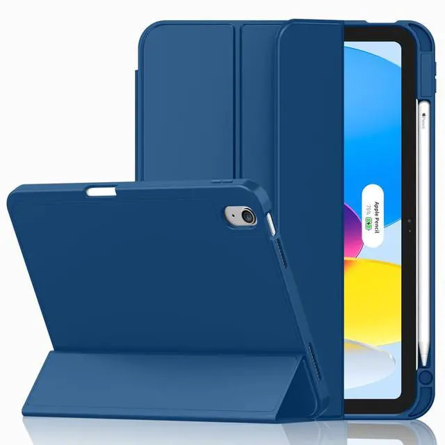 iMieet Case for iPad (A16)/iPad 10th Generation [11-Inch 2025/10.9 Inch 2022], Trifold Stand Smart Cover with Pencil Holder and Soft TPU Back, Supports Touch ID(Navy Blue)