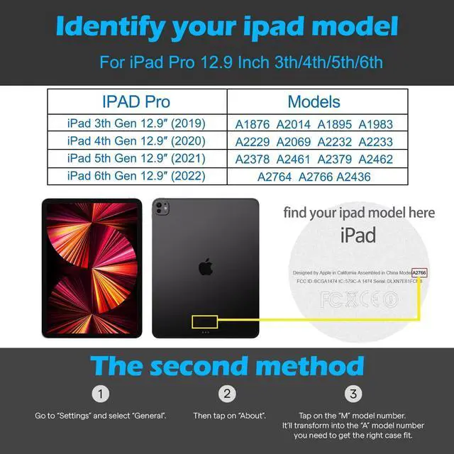 Perfect Compatibility Designed exclusively for iPad Pro 12.9" 3rd-6th Generation (2018-2022 releases) including models A2764, A2437, A2378, A2461, A2229, A2069, A1876, A1983, etc. Not compatible with any other iPad models or sizes. ^^ Premium Leather Protection Crafted with high-quality microfiber leather that offers the luxurious feel of genuine leather with enhanced durability. Features a smooth, skin-friendly surface that's scratch-resistant and easy to clean, maintaining a pristine appearance. ^^ Built-in Apple Pencil Charger Holder Secure magnetic storage for your 2nd Gen Apple Pencil that keeps it charged and protected.