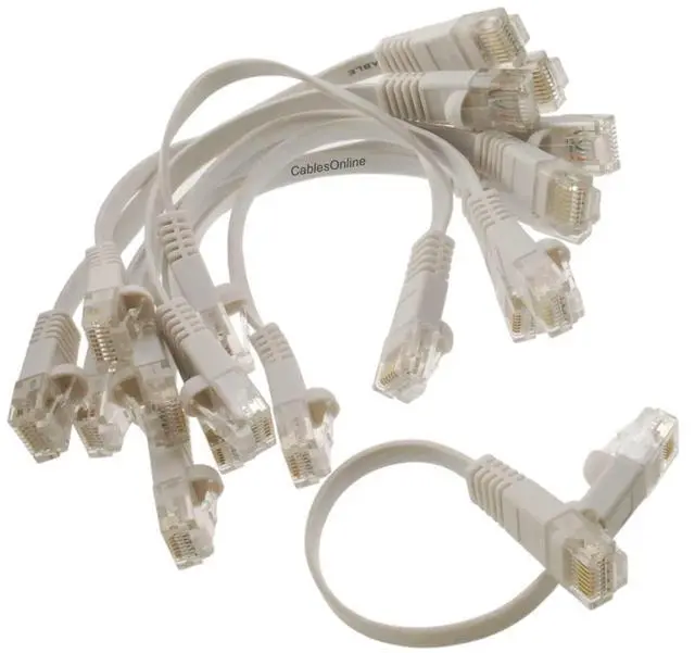 CablesOnline, 10-Pack White 6-inch CAT6 Network UTP Ethernet RJ45 Flat-Design Patch Cable, U6-000FW-10These Flat CAT6 short run patch cables meet or exceed current Cat6 proposed standards. The flat design is specifically suited for installing in tight spaces.