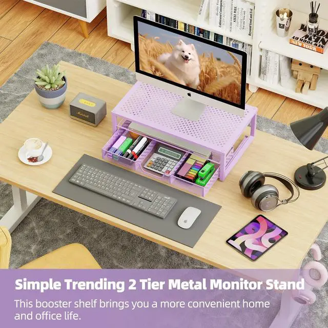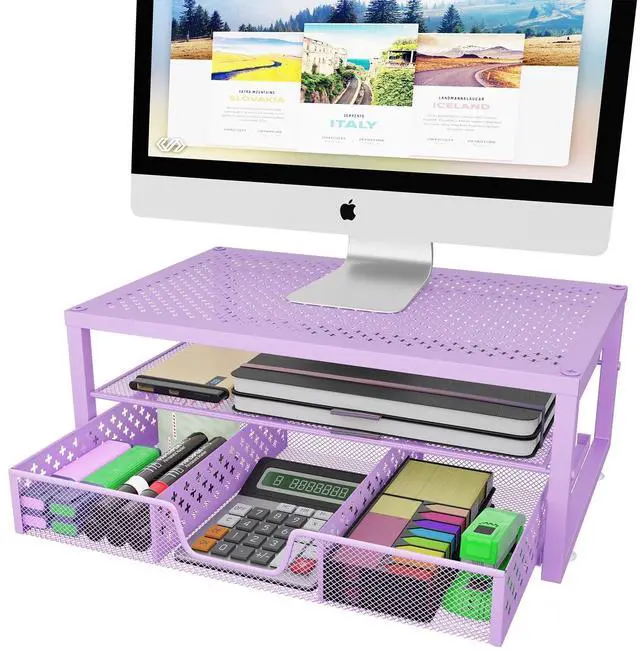 Multi-function Storage: BUILT-IN drawer are perfect for organizing office supplies and accessories for a more productive and tidy working environment: The bottom flat tray with metal desk accessories drawer organizer, can be ues alone ^^