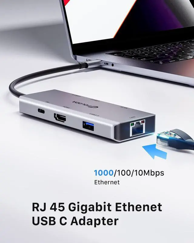 8-in-1 USB C Hub EthernetExtend Type-C or thunderbolt 3/4 port of your laptop to Gigabit Ethernet, 4K60Hz HDMI, PD 3.0 Charge port, 3*USB 3.0 and SD/TF card readers. Plug and run, no driver needed. ^^ USB C 4K60Hz