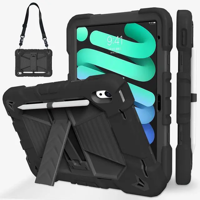 JKSML Case for iPad (A16) 11th/10th Gen ^^ Heavy Duty Drop Protective ^^ Rugged Silicone Cover ^^ Pencil Holder ^^ Adjustable Shoulder Strap ^^ Stand for iPad 10.9" (2022)/ 11" (2025) - Black