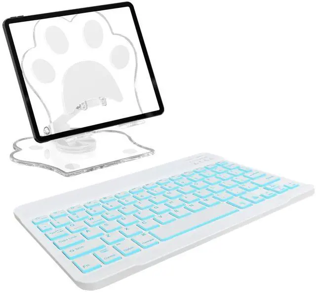 TopPerfekt for Bluetooth Keyboard, Cute Tablet Stand Adjustable & Foldable, 7-Color Wireless Rechargeable Keyboard for iPad, iPad Pro/Mini/Air, Samsung Xiaomi Tablets, etc - White