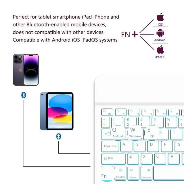 [ Excellent Compatibility ] : Supports iOS, Android, and Windows systems, perfect Bluetooth keyboards for Apple iPhone, iPad, iPad Mini, iPad Pro, iPad Air, Samsung, LG, Windows tablets, and smartphones