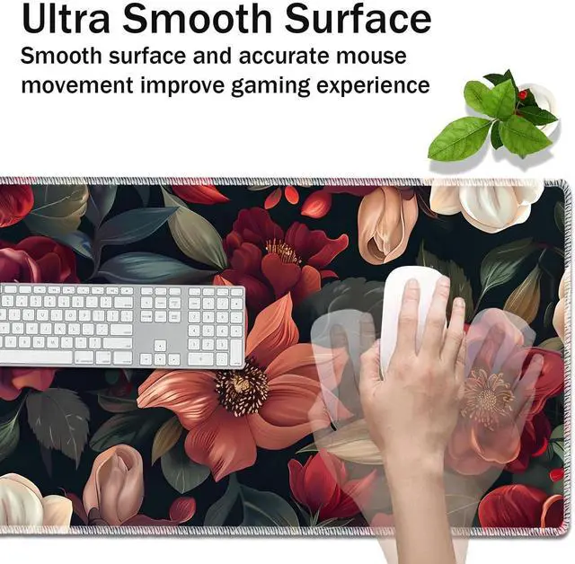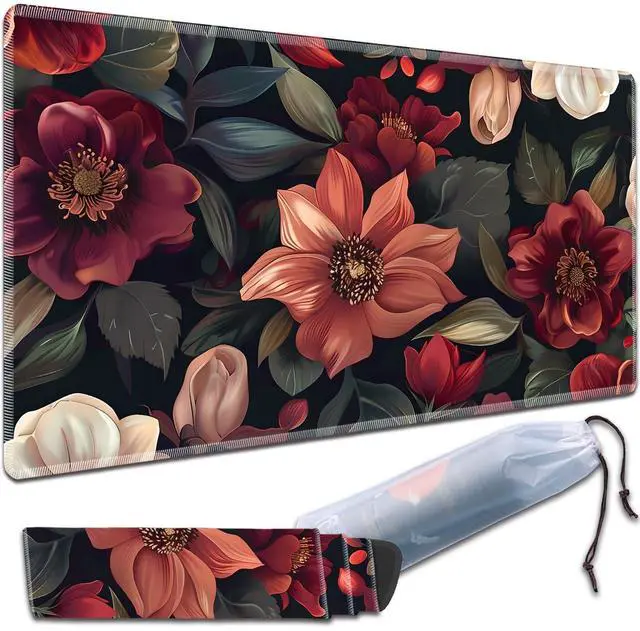 VSOJSOJKE MTG Play Mat, 24" x 14" TCG Card Play Mat, Smooth Stitched Edge, With Storage Bag, Flower Art
