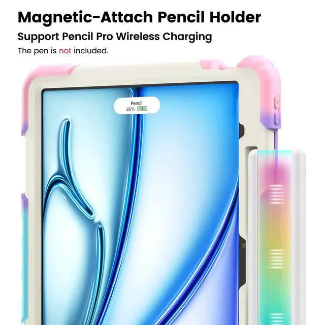 Precise Cutouts]: Case for iPad Air 13 Inch 2024/2025 Release with Built-in pencil holder to store or charge your pencil in the stylus holder when you're not using it(Only Support Pencil Pro Wireless-Charging), and avoid the losing or breaking your pencil when you're walking or outdoors (Pencil Not Included). Precise cutouts allow easy access to all buttons, speakers, and cameras