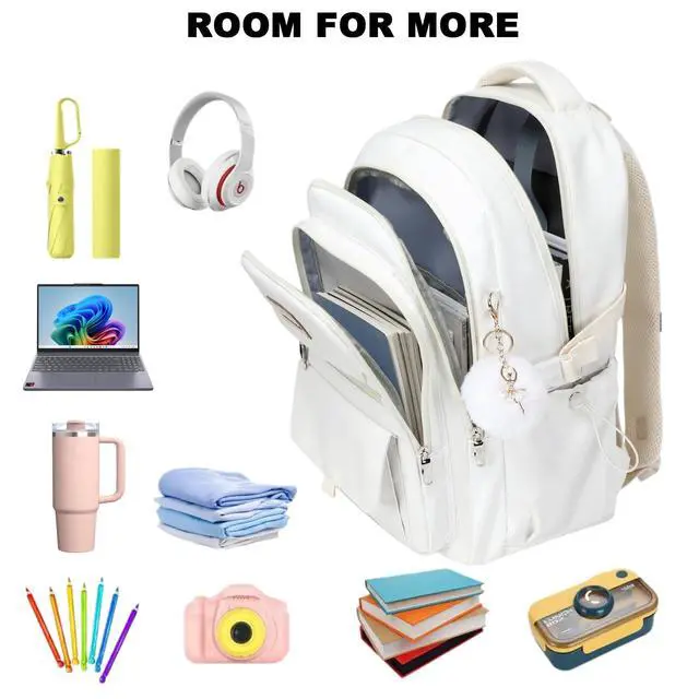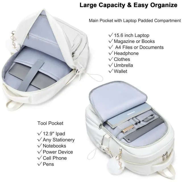 Large Size & Gift: The size of back pack is 18.5" x 12.2" x 5.9" (H*L*W), Weight: 1.65 LB. The laptops bag with padded compartment sleeve fit for 13.3, 14, 16 inch tablet. This women book bag also along with fluffy ball key pendant as gift makes the bags more fashionable and unique.