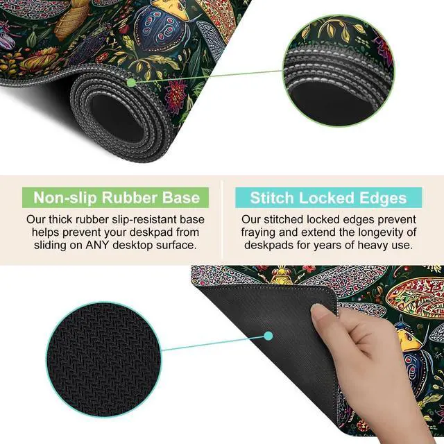 SOFT AND NON-SLIP RUBBER BASE: The soft and dense non-skid nature rubber base keeps the pad firmly in place, it can effectively prevent the mouse and keyboard from sliding and moving for stable operation. Works well on all types of desks including wood, glass, leather, metal, marble desk and more. While sturdy, the entended desk pad is flexible enough to be rolled up for easy transport, to move around so you can work or game wherever you want.