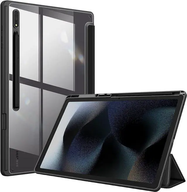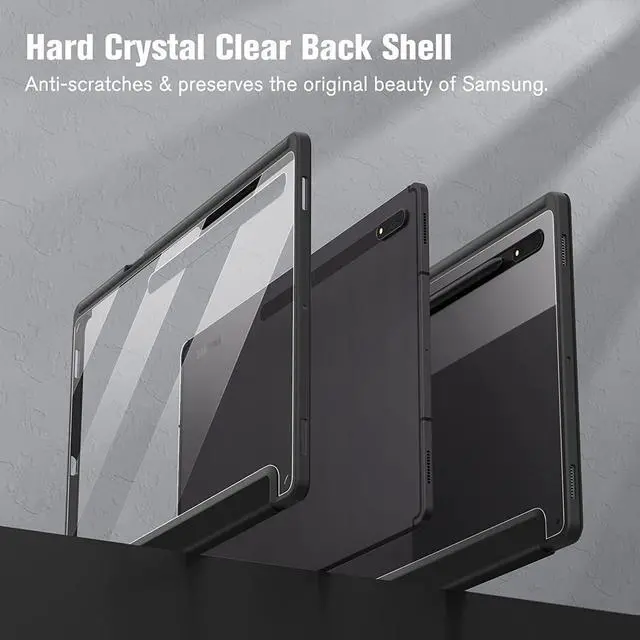 MOOISVS Case ForGalaxy Tab S9 Ultra/S10 Ultra 14.6", Auto Wake/Sleep Hard Crystal Clear Black Shell. Flexible Soft TPU Bumper with Pen Holder-Slim Folding Stand Folio Cover Fits Samsung Galaxy Tab S9 Ultra/S10 Ultra Tablet, Black