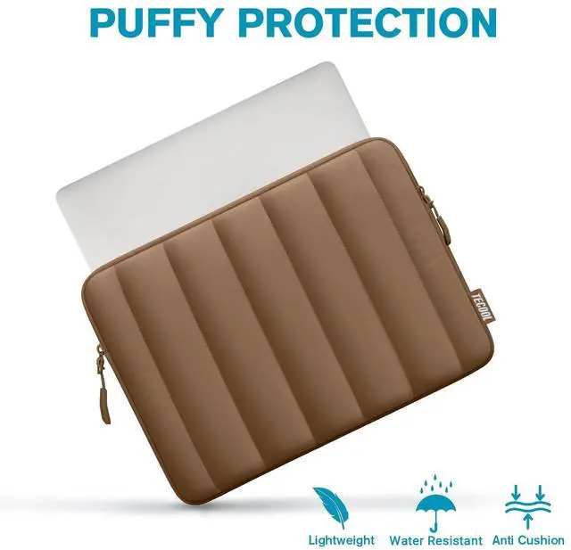 TECOOL Puffy Laptop Case 13.3 inch,13-13.3 inch Laptop Sleeve for MacBook Air 13 13.6 inch M4 M3 M2 2025,MacBook Pro 13/ Mac Pro 14,13.3" HP Lenovo Dell Waterproof Notebook Bag with Small Case,Brown