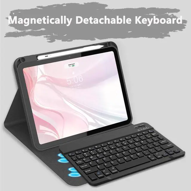 Versatile Stand & Pencil Holder: This iPad keyboard case allows for multiple viewing angles and positions, transforming your iPad into a laptop-like experience perfect for typing, reading, or gaming. The integrated pencil holder ensures you never misplace your stylus, keeping it within reach at all times ^^