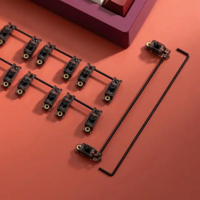 Stabilizer: The new version V 3.1 keyboard stabilizer adopts the glittery black shell, red silicone stem, can be very good to stabilize the stem, to avoid the steel wire sound. Well-selected Premium PC material housings. POM&TPU stem ^^