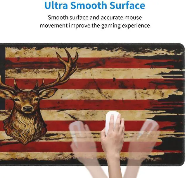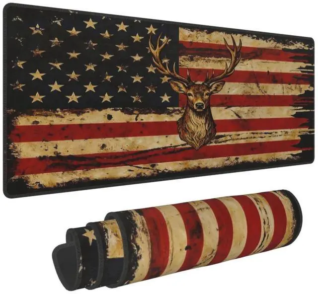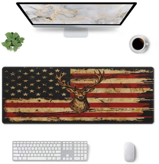 CANFLASHION American Flag Mouse Pad,Office Desk Mat 31.5"11.8",Large Gaming Mouse Pad with Antique Deer Design, XL Extended Waterproof Desk Pad for Computer with Non-Slip Rubber Base300 * 800 * 3mm
