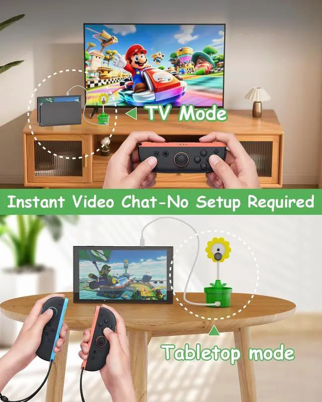 • Easy Setup with USB-C No Hassle, No DriversDesigned exclusively for Nintendo Switch 2, this camera uses a USB-C connection for instant plug-and-play use. No drivers needed. Fully supports TV mode, handheld mode, and tabletop mode on Switch 2.
