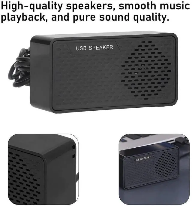 [SMALL AND PORTABLE] Easily portable and perfect for use at the cash register without occupying desktop space. Just plug and play for convenient use. [BETTER SOUND QUALITY] Amplify notebook sound with stereo capabilities for a premium audio-visual experience. [EASY TO USE] Built-in USB sound card decoding allows for direct music playback through the USB interface without the need for audio cables. [RARE EARTH MAGNETISM] Enjoy high-quality speakers that deliver smooth music playback and pure sound quality. [STURDY AND DURABLE] Made of high-quality ABS material for a long service life that is resistant to damage.