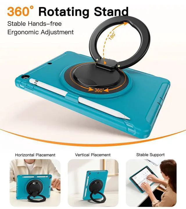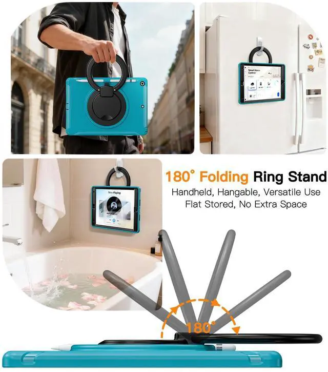 ^^ Ultra-Stable Ring Stand: Patented 360rotation & 180folding design outperforms strap-based stands. 3-stage damping ensures zero wobble at any angle. Adjustable from 0-180for typing, drawing, or viewing, lying flat when stored. Unique hook attaches securely to walls, headboards, or desksno magnets neededreducing neck strain ^^ Precision Protection with