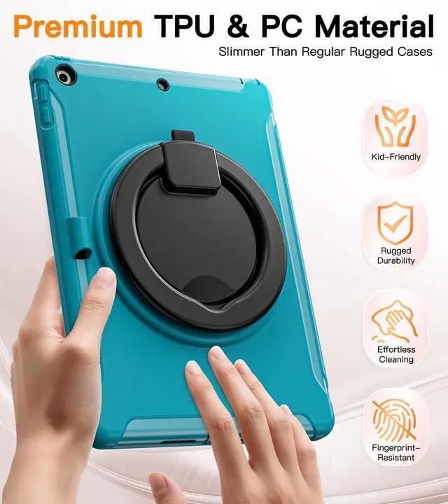 Slim Profile: The cute case for iPad 9h/8th/7th Gen with a screen protector is made from high-quality PC and shock-absorbing TPU materials. Dont worry about your iPad slipping from your kids hands and breaking. This rugged and shockproof protective cover maintains a slim profile thats 30% thinner than typical rugged cases while providing complete protection. Effectively preventing accidental falls, vibrations, slips, and scratches.