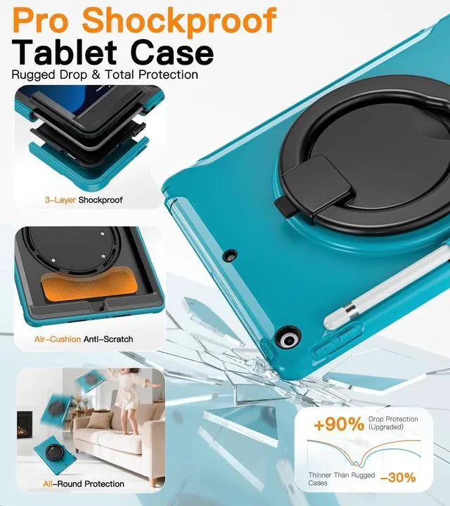 Generation (2021/2020/2019): Engineered exclusively for iPad 9th Gen 10.2" (A2602/A2603/A2604/A2605), iPad 8th Gen 10.2" (A2428/A2429/A2430), and iPad 7th Gen 10.2" (A2197/A2198/A2200/A2270). Perfect case for students, professionals, and creative users who demand perfect model compatibility. Confirm your iPad generation and model number on the back cover before purchase - not compatible with other iPad models or generations. ^^ Rugged Shockproof Protection in a