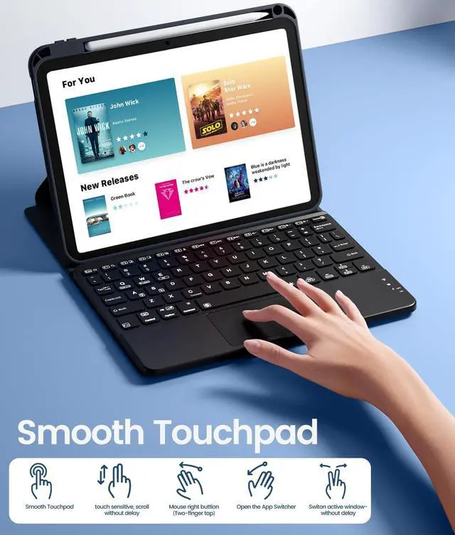 • Backlit Keyboard with Trackpad & RGB LightingHarvopu for iPad keyboard 10th generation/ (A16), enhance your productivity with the high sensitive touchpad. Navigate on tablet with precision, making it easier to perform tasks without touching the screen, like editing documents, browsing the web more efficient. The keyboard for iPad A16 allows you easily switch between 7 colors backlit with 3 levels adjustable brightness, engaging yourself in a free and type confidently in any lighting condition