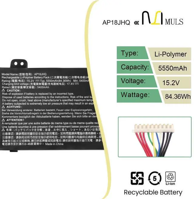 PT515-52 Series: ConceptD 7 CN715-71 ConceptD 7 CN715-72G ConceptD 7 CN715-73G ConceptD 7 Pro CN715-71P ConceptD 7 Pro CN715-72P ConceptD 7 Ezel CC715-71 ConceptD 7 Ezel Pro CC715-91P ConceptD 7 Ezel Pro CC715-92P ConceptD 7 Ezel Pro CC715-71P ConceptD 7 Ezel Pro CC715-72P ConceptD 7 Ezel Pro CC715-72G. ^^ Compatible with Part NumberFit for AP18JHQ, KT. 00408.001, 4ICP8/35/142. ^^ Safety Above AllOur batteries are certified by CE, FCC and RoHS to ensure your safety, and packed with prevention measures like short circuit, overheat and overcharge protection. Our laptop batteries are made with premium materials and circuit boards to ensure performance and durability. ^^ Give Customers the