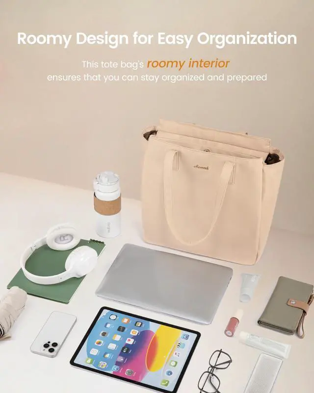 Design: This 18L work tote features 2 main compartments for effortless organization and quick access to essentials, which is perfect for carrying everything you need, making it ideal for busy women on the go.