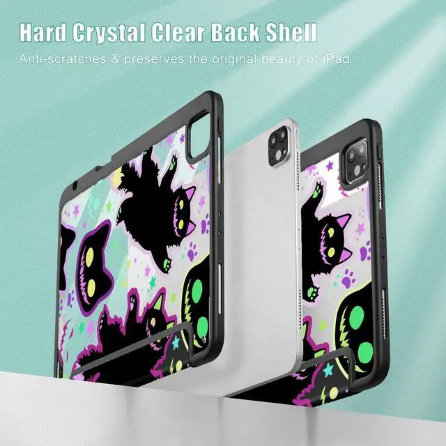 Lepeoac Case for iPad 12.9 Inch (6th/5th/4th/3rd Generation, 2022/2021/2020/2018), Pencel Holder + Trifold Support Auto Sleep/Wake, Transparent Shockproof Back Cover, Creepy & Funny Cats