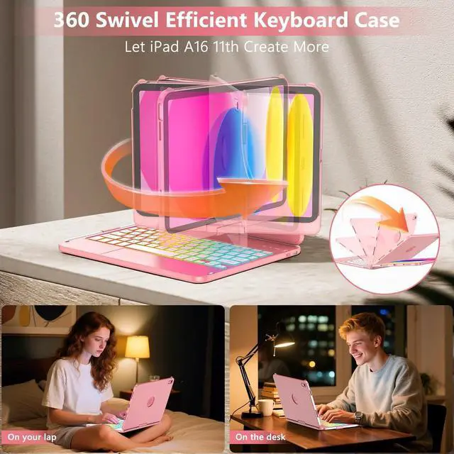 Generation: With this keyboard case for ipad 10th Generation, it only takes a few seconds to change for iPad to Laptop, you can watch your favorite movies or read new books and enjoy tablet in comfort ^^ 7 Colors Backlit keyboard case for iPad 10th