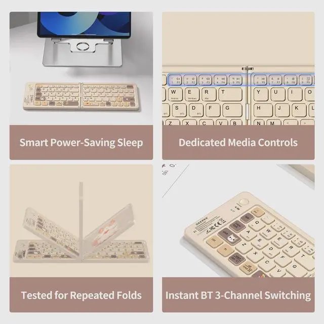 Multi-device Bluetooth KeyboardOur foldable keyboard with triple Bluetooth channels, which will maintains stable connectivity and fast response within 33ft operating range(Note: Turn on the Power button before connecting). Supports up to 3 devices such as ipad, smartphone, tablet or laptop. It can be your perfect partner to help you reply to emails, edit excel sheets or write down your ideas anytime
