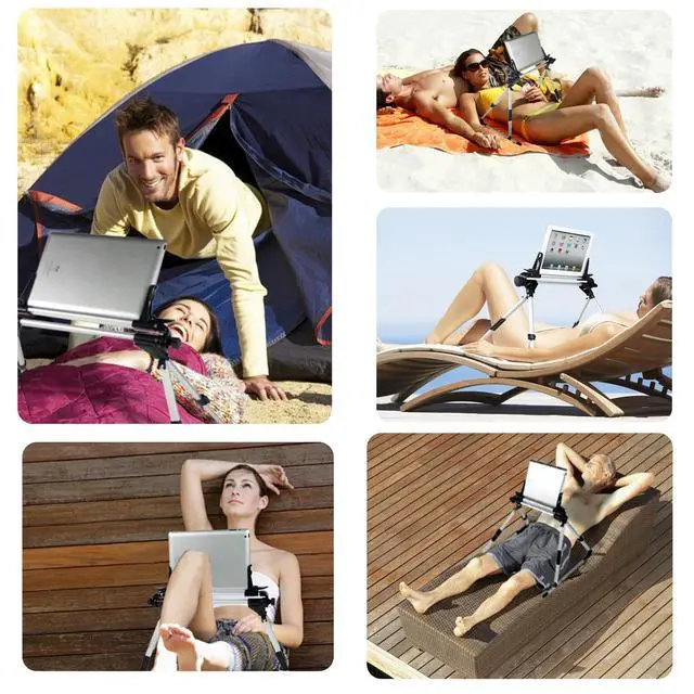 Compact and easy to carry: The bed tablet holder is portable folding design, compact size after storage, can be easily put into the computer bag, to meet the needs of outdoor mobile use. No tools needed, just a few simple steps to quickly install, whether it is a beach leisure or camping party, instantly enjoy the fun of watching movies. ^^ Lightweight and durableThis ipad bed stand is made of aluminium alloy, which is both lightweight and high-strength. Its sturdy and stable structure can withstand large weight and pressure, and is not easy to be deformed or broken. In addition, the aluminium alloy has excellent corrosion resistance, is not easy to rust, and has a long service life, so it can be used without worry even in humid environments such as the seaside.