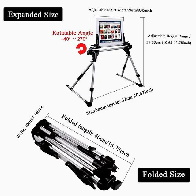 ipad holder for bed: If you are looking for a tablet stand for use in bed, or ipad stand for desk, this product will be ideal for you. It is not only suitable for adults, but also especially suitable for children, the elderly and bedridden patients with limited mobility. With it, you can easily free your hands and enjoy a more comfortable viewing or reading experience. ^^ Multi-Device Support0~ 24.5CM (0~ 9.65 inch) width adjustable, unlimited machine types/models to use, suitable for most mobile phones, tablets and electronic devices, meet most of your needs. Triangular structure, sturdy and durable, comfortable to use. ^^