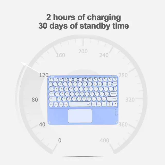 The keyboard trackpad combo also offers media hotkeys for volume control, play and pause, and more. The back panel is designed with aluminum alloy, which can be magnetically attached to the protective case (not included), is not easy to move, and will not affect the typing efficiency. ^^ LONG TERM USEPortable rechargeable Bluetooth keyboard has a built-in battery that charges once a month. Two hours of charging can standby for 30 days. 10 minutes of auto-sleep, and 34 hours to be fully charged. No need to replace the battery again and again, more environmentally friendly and convenient.