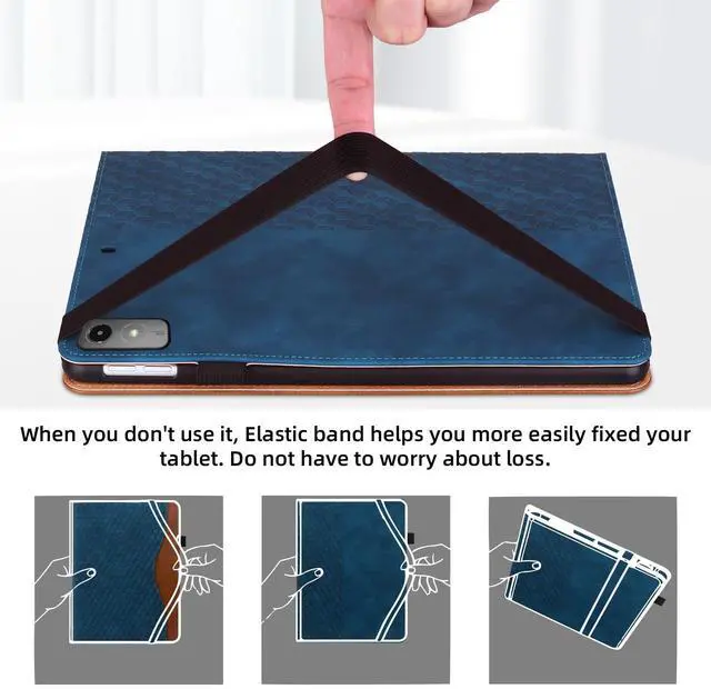 Strong protection: Premium PU leather and soft TPU cover provide full body protection against scratches, shocks, drops and bumps. It is closed with an elastic band that makes the tablet more secure when closed and protects the screen and internal cards from falling out. Classic and professional design.