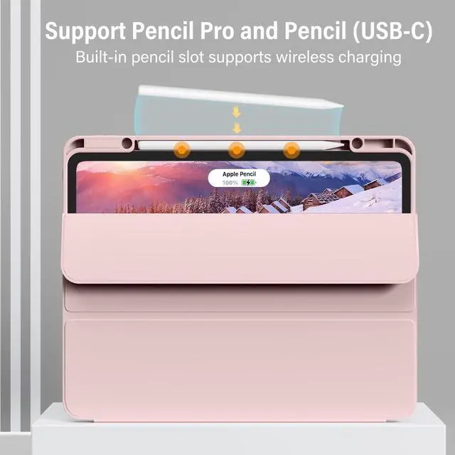 Generation (Model: A2925/A2926/A3007). NOT compatible with any other iPad models. Please check back bottom of your iPad to find the model number ^^ Highly ProtectiveProtective case made with high quality durable Soft Silicone and leather, slim and lightweight design with excellent craftsmanship and touch feeling. Prevents the tablet from scratching and bumping, and provide the maximum protection for your iPad 13 inch tablet ^^ Built-in Pencil HolderThis iPad Pro case fully supports Pencil Pro and Pencil (USB-C) with a recessed side groove for magnetic charging and a magnetic clasp to keep your Pencil secure. The built in Pencil Holder can hold your apple pencil in place tightly, conveniently store and remove your pencil. Effectively prevent falling out, reduce the likelihood of losing your pencil. (Apple Pencil is Not included) ^^ Auto Sleep/WakeBuilt-in magnetic strip, support smart automatically wakes or sleep function, easily wake or close your iPad at any times, great for saving battery and extending the lifespan of ipad ^^ Flexible AnglesThe tri-fold stand provides two angles (30/65) for flexibility to meet your typing and viewing needs. Avoid any joint pain and free your hands for other entertainment, giving you an excellent usage experience