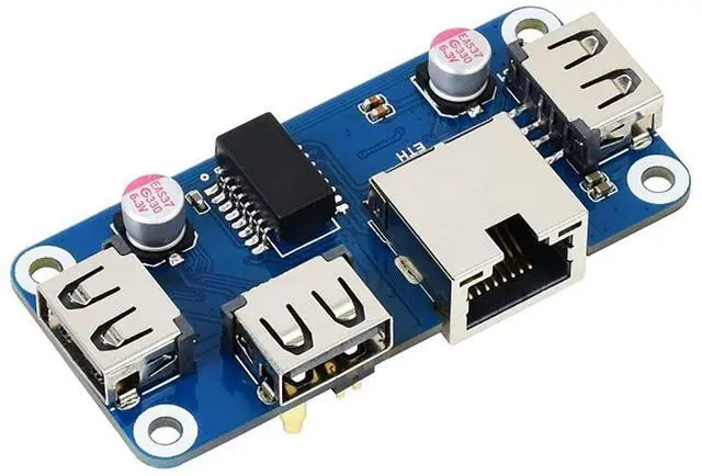 FeaturesThe ETH/USB HUB HAT (B) is an Ethernet and USB HUB designed for Raspberry Pi, providing 1x RJ45 Ethernet port and 3x USB 2.0 ports. It's pogo pin designis specialized for Zero series, while the onboard normal USB connector can be used to connect for Raspberry Pi boards through a USB cable. 3x extended USB ports, compatible with USB 2.0 / 1.1I ncorporates RTL8152B Ethernet chip, supports 1x RJ45 Ethernet port, 10/100M auto-negotiationPogo pin design, direct connecting for Raspberry Pi Zero/Zero W/Zero WHUSB HUB connector, connecting for Raspberry Pi 4B/3B+/3A+/2B through USB cablePart List1.