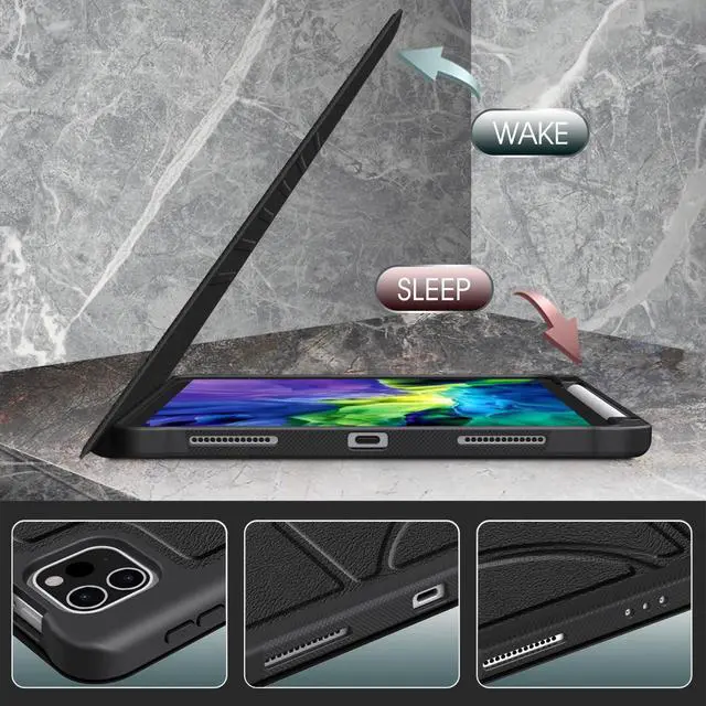 ^^ Premium quality PU leather with soft TPU back shell, protect your iPad from shocks, drops and impacts. Soft microfiber lining prevents your tablet from scratched. ^^ Supports 2nd Gen pencil magnetic and wireless charging when case is on. Built-in Pencil holder securely carries and protects your pencil 2nd Gen wherever you go. ^^ Built-in magnetic strip provides sleep / wake feature, automatically wakes or puts your device to sleep.