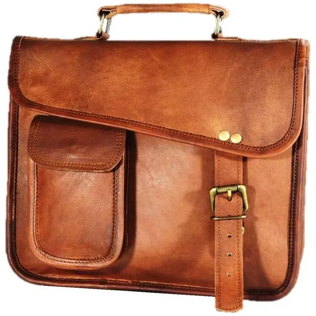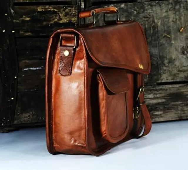 The leather satchel has dimensions: Height 9 Inch, Width 11 Inch, Depth 3 Inch Shoulder drop 24 (Approx) Inches. Top quality leather bag. comes with brass polished buckle ^^ The color of the small leather shoulder bag might slightly vary as are made out of different leather cut out. And due to different computer screens. The leather used in this bag darkens with usage (and makes it more attractive) so do not worry much about the color ^^ The Leather used for this crossbody leather satchel is full grain soft goat leather. Full grain leather retains the scars / marks on the goat skin giving each bag a vintage look & different look. ^^ The leather messenger bag has adjustable sling. Has an inner stitched canvas for durability. zippered pockets, inside the bag ^^ leather smells will fade away in few days for sure due to pack in poly bag leather smell little bit