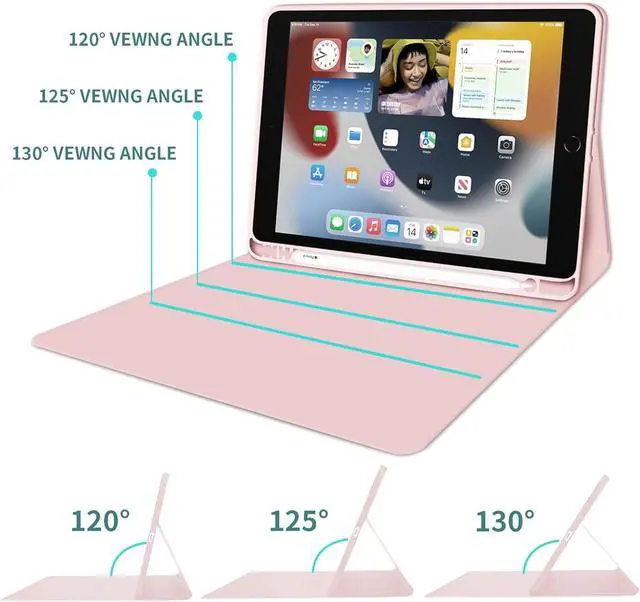 ^^ Long Battery Life & Multi Angle Support Built-in industry-high rechargeable Li-polymer battery make the wireless keyboard of this iPad 5th generation case with keyboard stand by for more than 3 days after 2-3 hours of full charge. The protective shell can be placed at different tilt angles to adjust the optimal viewing angle, very flexible and user-friendly. ^^ Buit-in Pencil Slot & Sturdy PU MaterialThe iPad 6th generation keyboard case has a convenient left side built-in pencil slot that easy to storage and remove your pencil (Apple Pencil is Not included). Premium PU leather cover is waterproof, scratch proof and fingerprint proof, providing full protection for your beloved tablet.