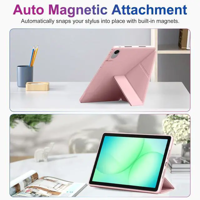 Protect your Galaxy Tab A11 Plus 11-inch tablet with this multi-angle PU leather folio case, thoughtfully crafted to deliver elegance, comfort, and full protection. The hidden pencil holder provides a discreet and secure place to store your stylus, while the multi-angle folding stand lets you adjust for the ideal viewing or typing experience. Made with premium imitation leather and a soft back shell, this case guards against drops, bumps, and scratches, keeping your tablet safe without adding unnecessary bulk. Its lightweight, slim profile and sleek appearance make it an ideal companion for professionals, students, and creators on the go.