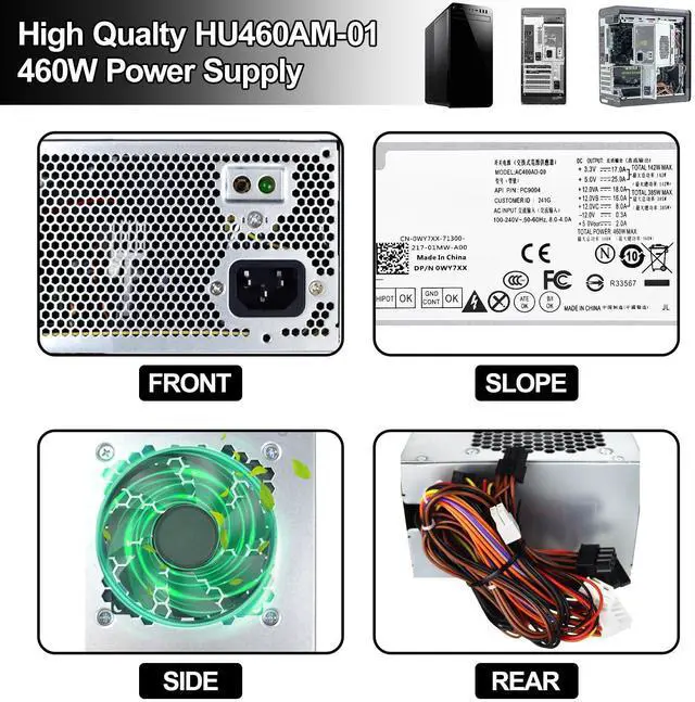 460w Dell PSU HU460AM-01 Compatibility460W WC1T4 Power Supply, AC460AM-01 Power Supply Compatible with Dell XPS Series power supply XPS 8930, XPS 8920, XPS 8910, XPS 8900, XPS 8700, XPS 8500, XPS 8300, XPS 8100, XPS 8000, XPS 7100, Alienware Aurora R5 power supply. ^^ Dell PSU HU460AM-01 Power Supply Replacement Part Compatible Model Number HU460AM-01 460W Power Supply Compatible with Dell XPS power supply replace part number: WC1T4, AC460AM-01, L350AM-00, AC460AD-00, D460AM-01, D460AM-03, DPS-460DB-15, WY7XX, HMCPC, 6GXM0, 7YC7C. ^^